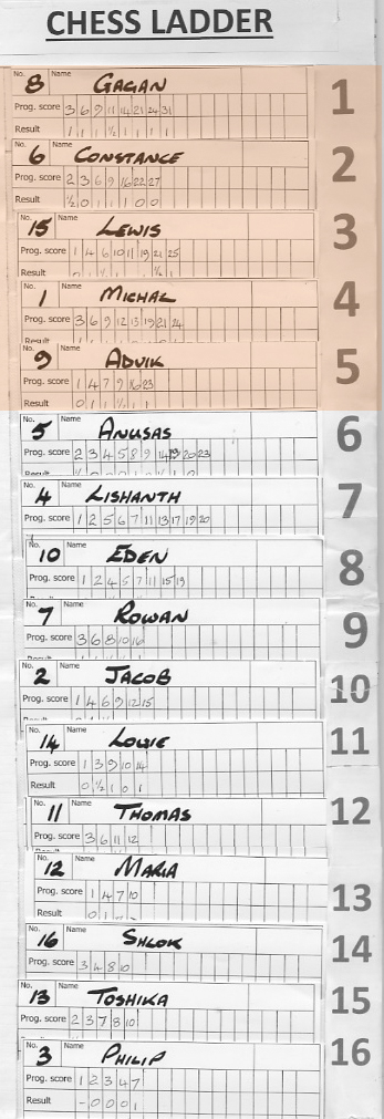 In this example the top five* are highlighted in the RED Zone and would only be allowed to answer the harder quiz questions. The rest for the beginner quiz. The points values will be the same for each section, if you climb into, or drop out of the red zone, then you answer a different set of questions.