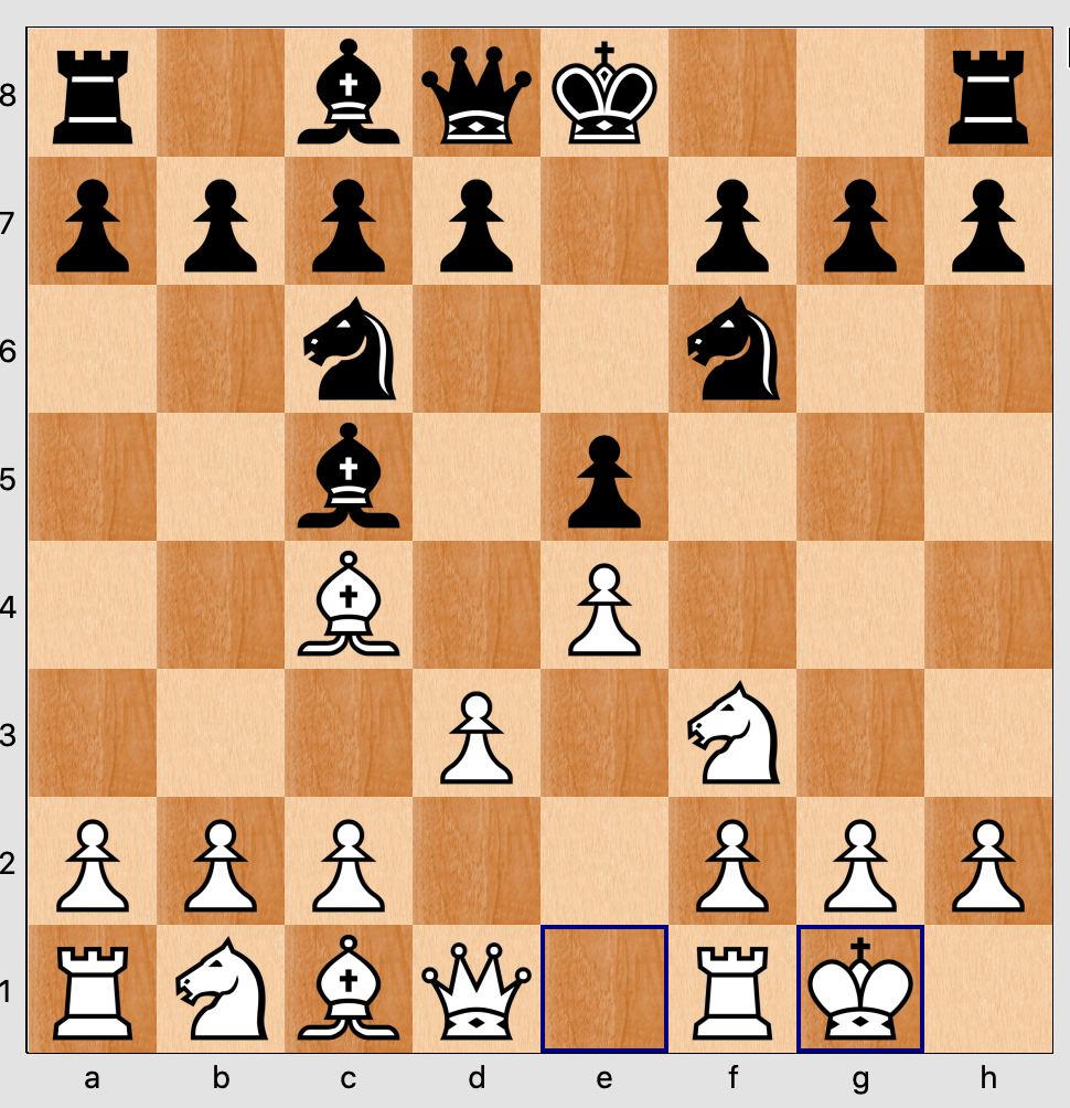 For example an e4 opening followed by Nf3 and Bd4 – controlling the centre, would look like this:-