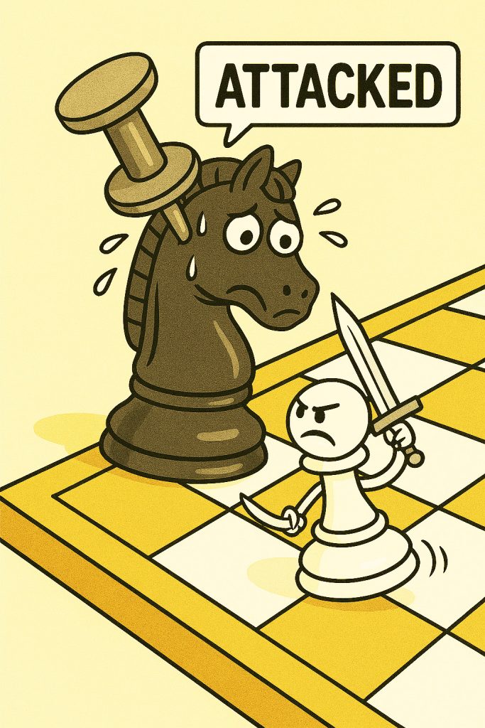Remember that you “don’t have to take a pinned piece“, if it causes problems for your opponent then leave it, as long as it’s safe to do so. Pinned pieces do not protect!