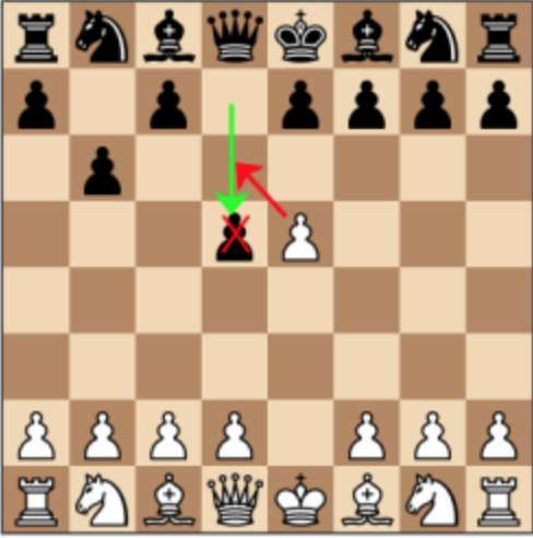 Your opponent moves a pawn two squares forward from its starting position, landing next to your pawn. You then have the immediate opportunity to capture that pawn as if it had only moved one square forward. You must make the en passant capture on the very next move. If you don’t, the opportunity disappears.