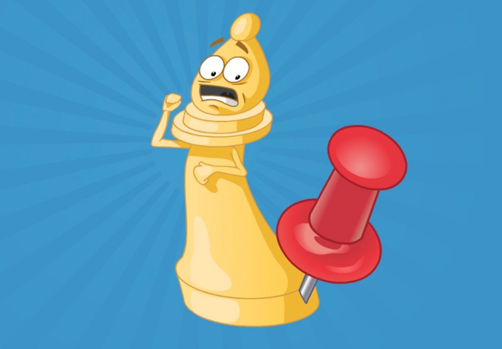 So let’s talk about the PIN tactic in chess. A pin is when one piece restricts the movement of an opponent’s piece because moving it would expose a more valuable piece to capture.
