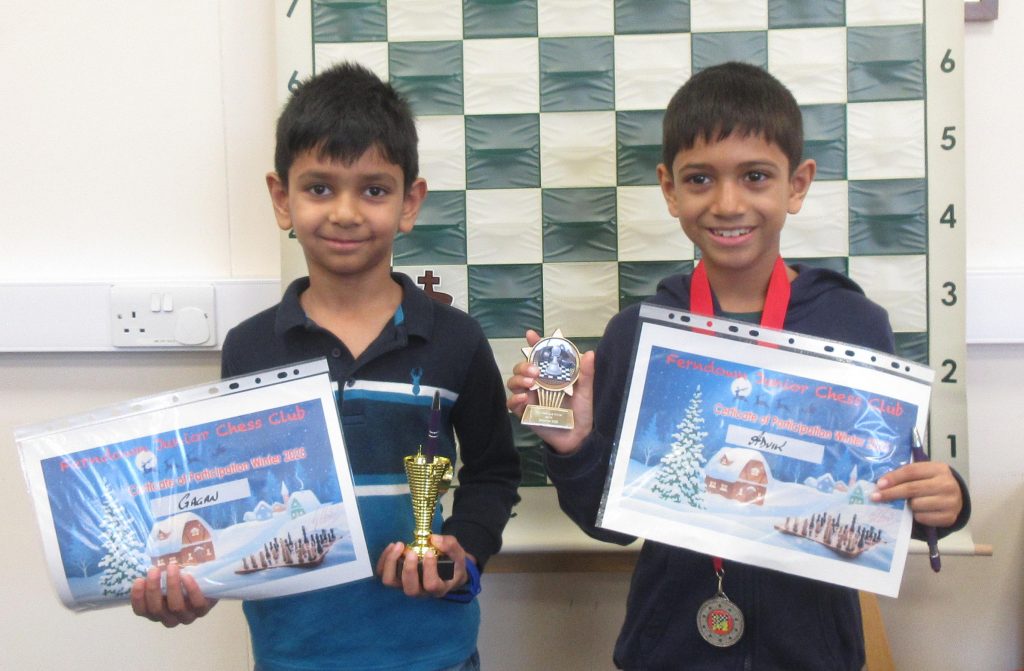 A very exciting and lively Saturday morning unfolded once again, with 14 enthusiastic juniors eagerly taking part in a variety of fun and engaging games. In addition to the enjoyable activities, a crucial decider match in the Ladder competition added an extra layer of excitement and anticipation to the event. At the end of the session, as some members will be away holidaying next week, certificates recognizing participation and achievement, along with unique and specially designed ‘Ferndown Junior Chess Club’ pens, were proudly presented to everyone who attended, making the day even more memorable for all the young players.