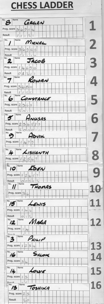 Wins today for Constance, Jacob, Lewis, Gagan and Anusas. Stalemate draw for Eden.
