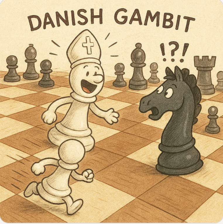 The Danish Gambit is an aggressive 1.e4 e5 opening for White. This opening is well-suited for aggressive players who don’t mind sacrificing pawns for the initiative. Although it is rare in master-level play, the Danish Gambit can be a fun and playable opening for club-level players.