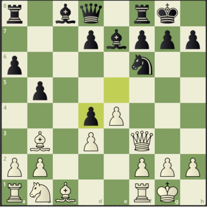 This discovered attack occurs when the pawn on e4 advances to threaten the Knight, simultaneously unveiling an attack by the Queen on Black’s Rook at a8.