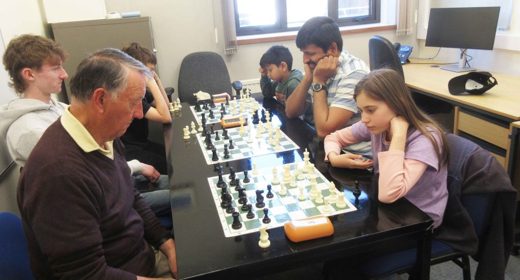 In the second room, Jon Cacthpole took the lead for the team of experts, which included Samuel, John Heath, and Kiran, along with advanced players Constance, Gagan, Kieran and Jonah, who all engaged in detailed endgame discussions. Following these in-depth conversations, they participated in 20-minute games that were accompanied by personalized coaching sessions to help improve their skills.