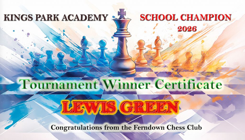Our very own Lewis Green recently entered his school's chess competition and impressively won it outright, showcasing his exceptional skills and dedication. Unfortunately, despite his outstanding achievement, the school did not provide him with any form of recognition or reward for his success. Feeling that this was unfair and wanting to properly acknowledge his accomplishment, I decided to take matters into my own hands and ensure that Lewis received the recognition he truly deserves.