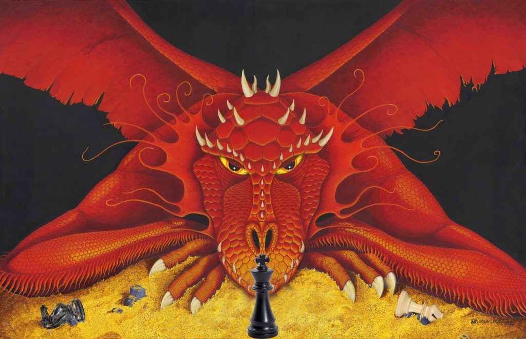 The Sicilian Dragon is named for the similarity of its structure to the constellation Draco. Having played 2…d6 and 4…Nf6 (inducing 5.Nc3, blocking the c-pawn) Black continues by fianchettoing the king bishop, which shoots along a strong, long diagonal.