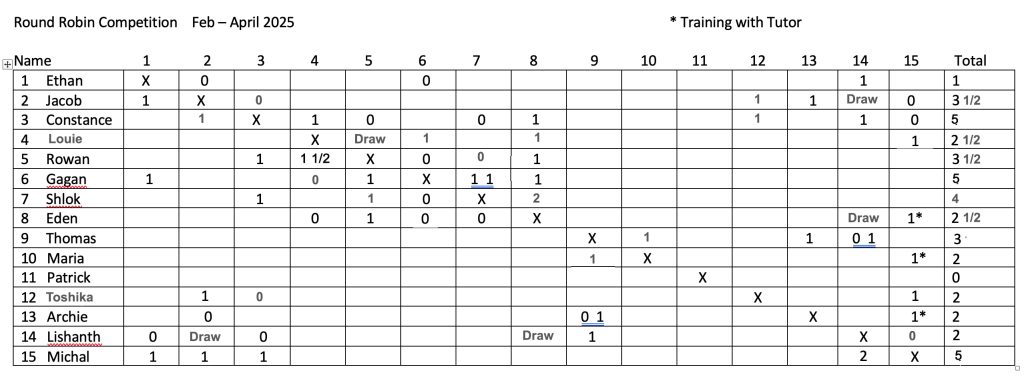 Wins today by Constance, Jacob, Michal, Louie, Toshika and Rowan, with draws agreed with Eden and Lishanth.
