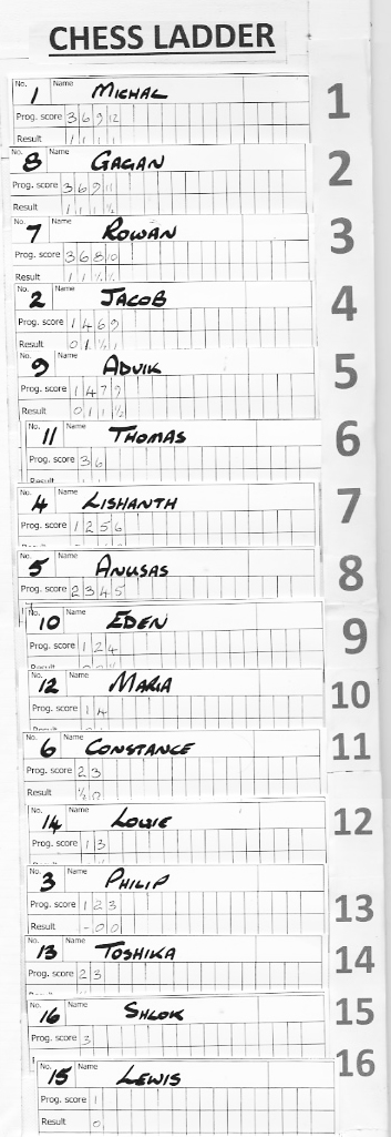 Draws for Toshika, Rowan and Gagan. All this means the ladder now looks like this:-