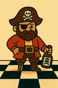 Todays main theme was being a “Pirate of the Chess Board”, in other words gambits that rob, pillage and plunder your opponent. Various gambits were shown and discussed which raised not only eyebrows but also a few ooohs and ahhs, as surprised moves were made. Gambits or Traps may not be sound and there are various moves to counter, but at beginners and intermediate levels, they can create easy quick wins and are good fun.