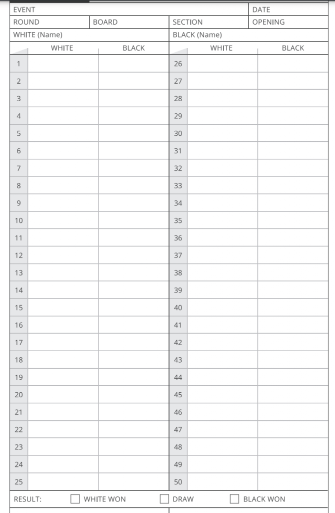 So on Saturday this week I'm going to run through how to record a game, AND for a bonus, those who give it a try during a Ladder game will get an additional 1 point for effort or 3 points if the score sheet has been correctly filled in. To allow more time to do this, the clocks will be set at 15 mins each.