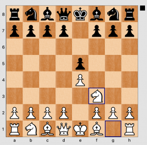 2) Nf3 – Best move, white develops a piece and attacks e5, best option, develop Knights before Bishops is usually the rule.