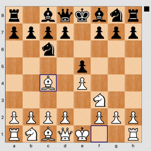 3) Bc4 – Placed on a valuable diagonal and attacks Black’s weak f7 pawn as the King is the only protector.