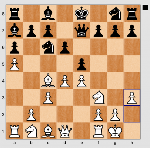 With Black’s Queen and knight ready to swoop down on the King side, Black removes the offending pawn, weakening White’s position.