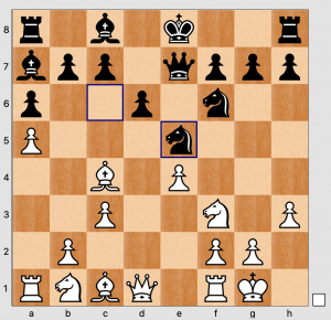 9)……………………Nf6 – Develops a piece and attacks e4 – Develop with a threat whenever possible!