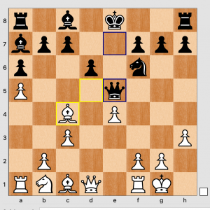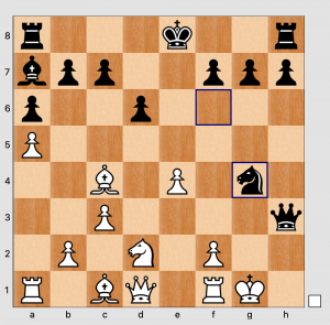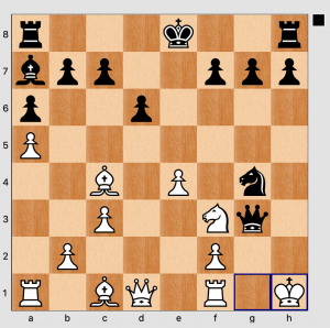 0-1 – Black’s threat is 18………..Qh3+ 19. Nh2 Qxh2#
