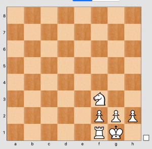 Firstly, let’s look at a typical castled position where the king is protected by 3 pawns and a knight. If these protectors stay where they are the king remains fairly safe. If however the formation changes when a player advances the h pawn, g pawn or the knight, then the king becomes vulnerable to attack.