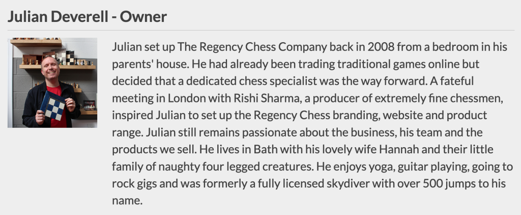 We were recently contact by Paula Hillier who’s worked for The Regency Chess Company for over nine years. She’d noticed our website and wanted to offer the companies support to the club and look at ways we can co-operate together. As a business they are always looking at ways to promote chess and working with clubs and associations forms a key part of how they do this. Their story began in 2008 when Julian Deverell started the business and website from his parents’ home. Today it employs a small team of staff in a purpose built warehouse in Frome, Somerset. All of the chess sets are in stock and available for fast dispatch and they boast a 4.9-star rating on Google. When contacting them be sure to mention you’re from the club and Paula will look after you.